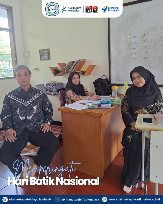 Sebagai SD Al-Muttaqin, kami meyakini bahwa memperingati Hari Batik bukan hanya mengenakan pakaian batik, tetapi juga menumbuhkan rasa bangga sebagai bangsa Indonesia sekaligus memperkuat nilai-nilai luhur dalam kehidupan sehari-hari.
