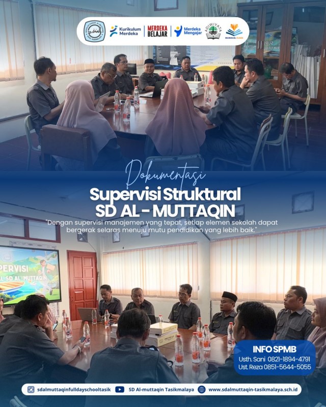 Melalui supervisi struktural ini, SD Al-Muttaqin menegaskan kembali tekadnya untuk terus melahirkan inovasi, memperkuat koordinasi, dan menumbuhkan budaya kerja kolaboratif. Dengan manajemen yang terarah dan berlandaskan nilai-nilai Qur’ani, setiap guru, staf, dan pimpinan sekolah menjadi bagian dari gerakan bersama menuju mutu pendidikan yang lebih unggul.