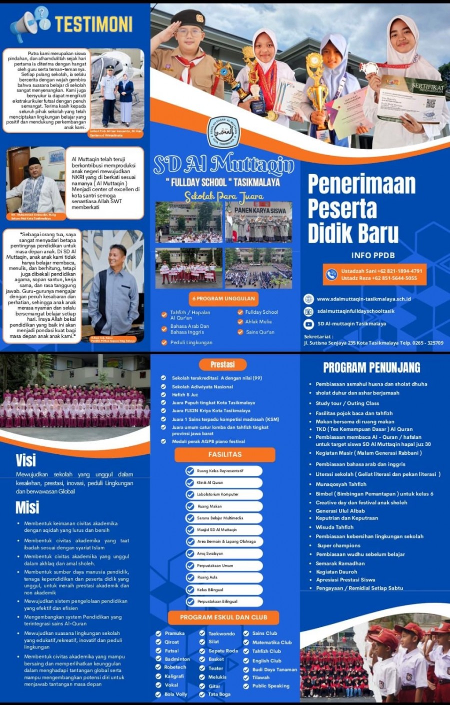 SD Al Muttaqin Fullday School Tasikmalaya membuka Seleksi Penerimaan Murid Baru (SPMB) Tahun Ajaran 2026/2027 bagi calon peserta didik yang ingin tumbuh dan berkembang dalam lingkungan pendidikan Islam yang unggul, berprestasi, dan berwawasan global.
